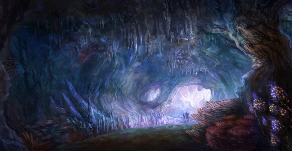 `아귀굴 던전`은 게임에 참여한 유저들이 처음 만나게 되는 던전으로 범위 공격과 구미호 소환, 기절 공격 등의 기술을 사용하는 보스 몬스터 ‘호조사’가 지키고 있으며, 2개의 동굴 형태로 구성되어 있다. 전체적으로 어둡고 음습한 동굴의 모습을 하고 있으며, 이번에 선보인 일러스트는 그러한 동굴 내부의 모습을 표현하고 있다.